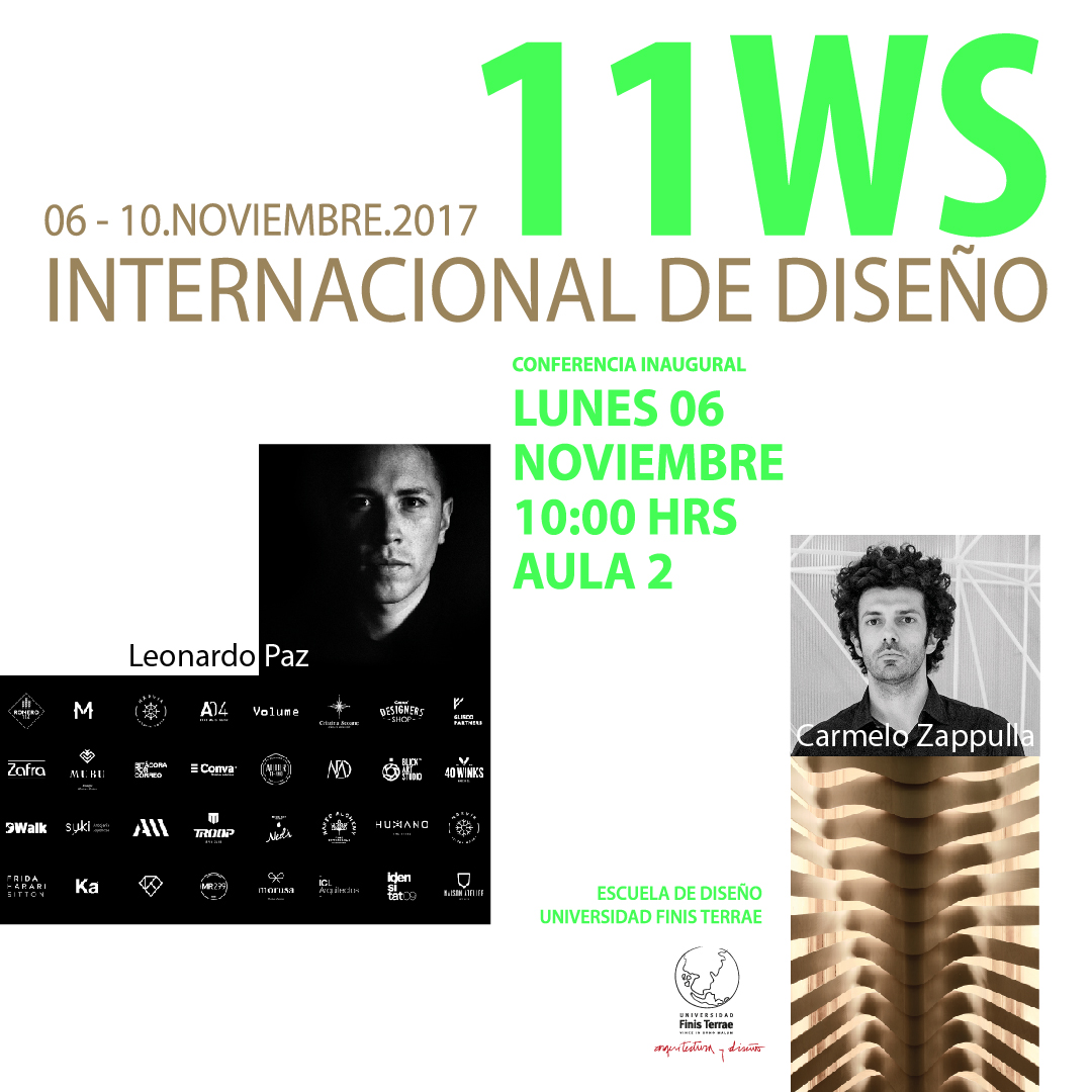Ambos profesionales serán los encargados de dirigir el 11º Workshop Internacional de Diseño, organizado por la Escuela de Diseño U.Finis Terrae, el cual se desarrollará entre el 6 el 10 de noviembre y comenzará con una conferencia abierta el lunes 6 a las 10.00 hrs. en la Facultad de Arquitectura y Diseño. Carmelo Zappulla trabajará con los alumnos que estudian la mención en Interior y Equipamiento y Leonardo Paz realizará un encargo para los estudiantes de la mención Diseño Gráfico.