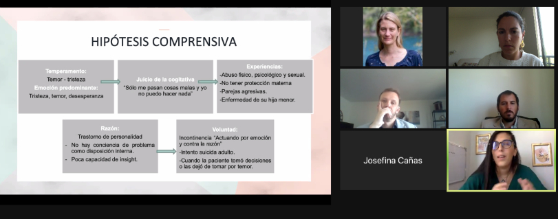 Los alumnos que realizaron sus prácticas clínicas atendieron a sus pacientes de forma remota, acompañados de sus tutores clínicos y su grupo de práctica. Al finalizar sus prácticas, los estudiantes desarrollaron un informe escrito del proceso, exponiendo los antecedentes relevantes, las hipótesis comprensivas, los objetivos de la intervención y los logros del mismo, defendiéndolo oralmente frente a una comisión.