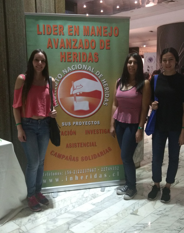 El 10 y 11 de noviembre se llevó a cabo el Tercer Congreso Latinoamericano de Heridas denominado “Ciencia y heridas, dos mundos unidos”. En esta oportunidad, el Instituto Nacional de Heridas becó a dos alumnas y una docente de la Escuela de Enfermería, por haber colaborado en el día nacional de las heridas. Las asistentes fueron las alumnas Francisca Acevedo y Valeria Domínguez y la docente Daniela Fernández.“Fue una muy buena experiencia, las alumnas pudieron conocer acerca de las novedades existentes en el ámbito de la curación de heridas respecto a la disminución de carga bacteriana con el uso de nuevos productos muy efectivos, apósitos bactericidas y bacteriostáticos, uso de terapias coadyuvantes, como el uso de células madres en curaciones, el uso de terapias de presión negativa y prevención y manejo de UPP ente otros”, afirmó Daniela Fernández.