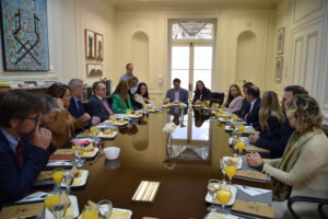 La cita fue organizada por la directora de Relaciones Institucionales, Lorena Burgueño; el director del Observatorio de Asuntos Internacionales, Alberto Rojas; y además participaron el director de la Escuela de Periodismo, Alberto López-Hermida, los académicos del Observatorio de Asuntos Internacionales, Luis Lira y Vanessa Cárdenas; y la académica de la Escuela de Historia y el Centro de Investigación y Documentación (CIDOC), Andrea Botto.