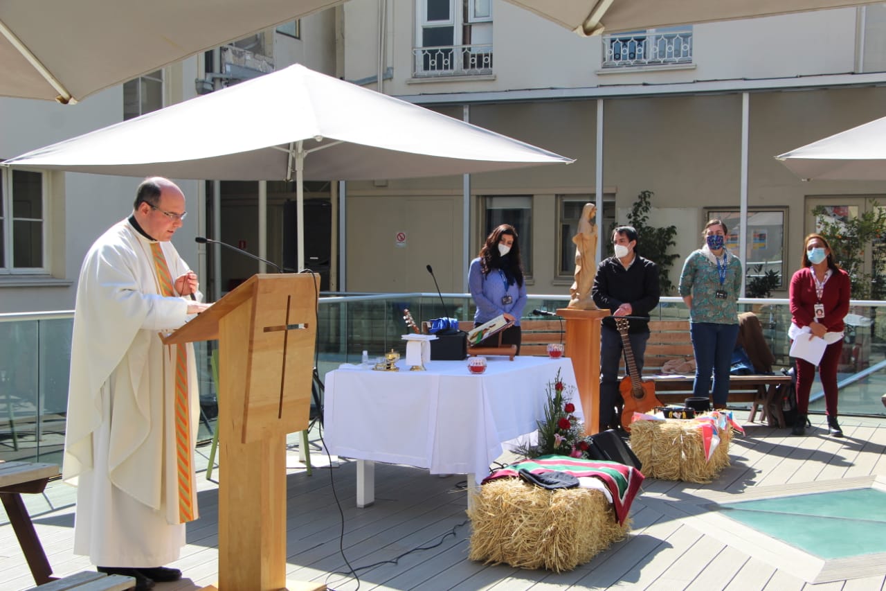 Todo comenzó con la Misa a la Chilena organizada por la Pastoral U. Finis Terrae, que fue oficiada por el capellán de la Universidad, Padre Pablo Redondo y que incluyó un pie de cueca dedicado a la Virgen. Esta actividad se desarrolló de manera presencial y también fue transmitida vía online.