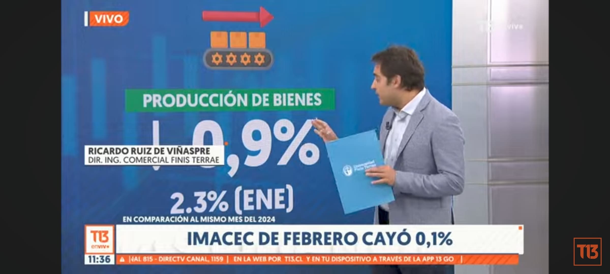 El economista Ricardo Ruiz de Viñaspre, director de Ingeniería Comercial de la Universidad Finis Terrae y ex director del SENCE, participó en el programa Mercado en Vivo, de 13C, donde abordó el impacto de los aranceles anunciados por el presidente de EE.UU., Donald Trump, y los datos que arrojó en nuestro país el Imacec de febrero. Según el académico, las medidas adoptadas por el mandatario estadounidense provocarán una caída del comercio internacional, afectando las exportaciones y golpeando a sectores clave, como el empleo.