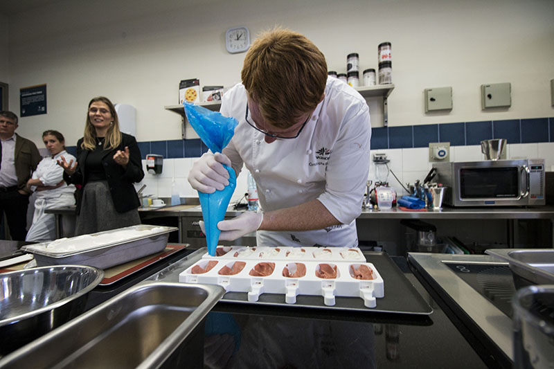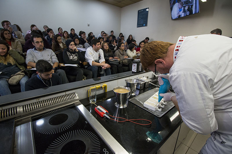Dos estudiantes de la carrera de Dirección y Gestión de Artes Culinarias de la U. Finis Terrae fueron becadas para asistir a la actividad y destacaron la técnica de Domange.