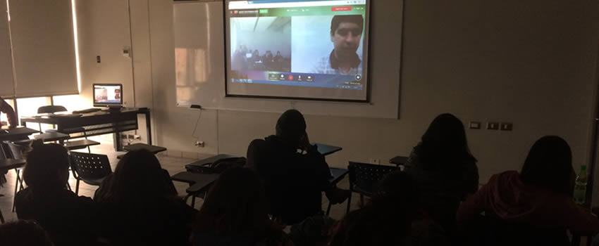 El profesor Cristian Rodríguez, Psicólogo de la Pontificia Universidad Católica de Chile, actualmente Fullbright-Conicyt Doctoral Student, realizó una clase en la Cátedra Psicología social, vía video conferencia desde el Departament of Psychology and Social Behaviuor University of California.
