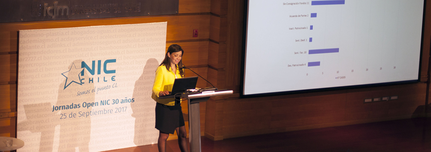 La profesora de Derecho de la Universidad Finis Terrae, Anny Carvajal, fue invitada a exponer durante el evento Open Nic 2017, una jornada de charlas con las que se celebraron los 30 años del registro “punto CL” en el país. En la actividad organizada por NIC Chile -entidad encargada de administrar los registros locales de dominio- la académica compartió la experiencia y estadísticas del convenio en que la Clínica Jurídica Pyme ha asumido la defensa de los usuarios cuando hay procedimientos arbitrales.