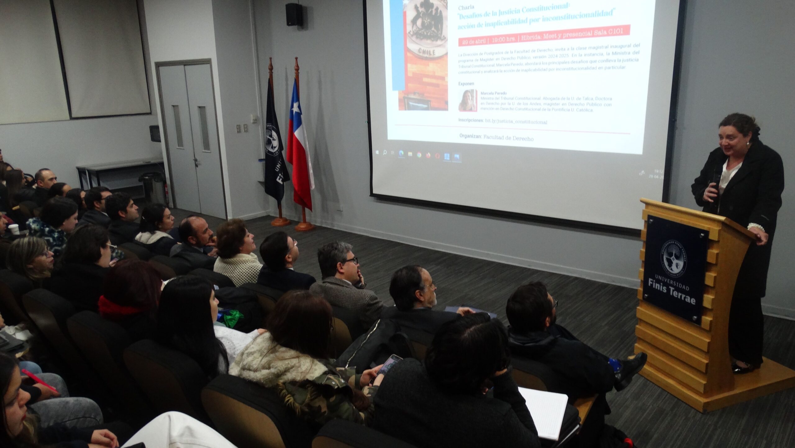 En su ponencia, realizada en un auditorio repleto de alumnos de pre y postgrado, la magistrada analizó los requisitos establecidos para la admisión a trámite de la acción de inaplicabilidad por inconstitucionalidad, reflexionando en torno a “cómo la idea de la admisibilidad debe ser entendida como una garantía para el debido proceso de la inaplicabilidad”.