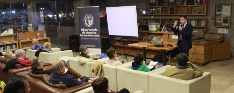 Durante el conversatorio el público tuvo la posibilidad de participar mediante preguntas y comentarios. La actividad, organizada por el Observatorio de Asuntos Internacionales de la U. Finis Terrae, pertenece al ciclo de charlas “Una mirada a la actualidad Internacional” que inició en 2016 y se realiza una vez al mes en conjunto con el Café Literario Parque Bustamante de la Municipalidad de Providencia.
