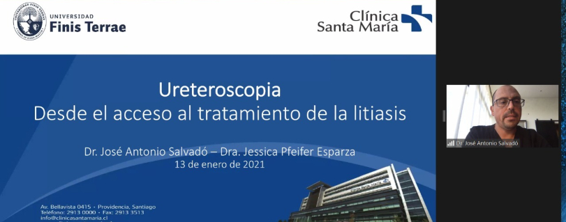 La Dra. Jessica Pfeifer, residente de Urología de cuarto año de la Universidad Finis Terrae, estuvo a cargo de la primera clase junto al Dr. José Antonio Salvadó. En ella recorrieron “técnicas quirúrgicas de la ureteroscopía, donde mi participación estuvo enfocada en las indicaciones quirúrgicas, el estudio preoperatorio, posicionamiento, preparación del paciente y arsenal quirúrgico y, finalmente, las complicaciones de este procedimiento”, según comentó.