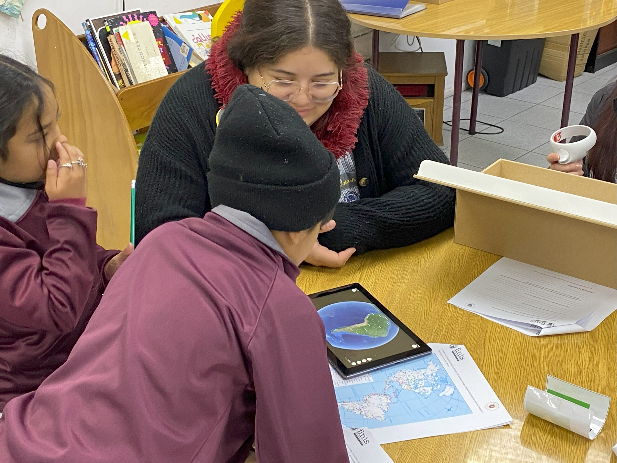 “Este proyecto es una buena oportunidad de trabajo en equipo y para demostrar la motivación que podemos traspasar a los estudiantes, donde quizás por su contexto no tienen acceso a estos recursos (viajes al exterior), más que con lentes de realidad virtual o tablets, lo que significa que pueden desarrollar aprendizajes de otra manera”, explica Danae Quintana, estudiante de 3° año de Pedagogía en Ed. Básica de la U. Finis Terrae.