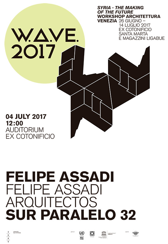 En el marco del evento W.A.VE 2017, dentro del cual se está realizando en Venecia el workshop “Syria, the making of the future”, el decano de la Facultad de Arquitectura y Diseño de la Universidad Finis Terrae, Felipe Assadi, realizará la conferencia “Sur Paralelo 32” el próximo martes 4 de julio a las 12:00 hrs en la IUAV, donde expondrá sobre su obra.