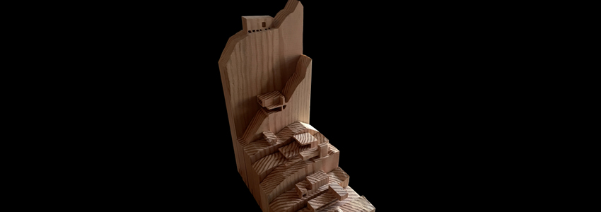A través de una maqueta de pino oregón de 2” x 8” x 320 cms. cortada en 12 bloques tallados, el arquitecto presenta sus obras, mediante soportes topográficos inmediatos que reconstruyen, en conjunto, el perfil de la sección geográfica del paralelo 32ºS entre la Cordillera de Los Andes y el Océano Pacífico. Esta exposición vivencia que en la toma de decisiones de la mayoría de estas obras, un factor determinante ha sido la topografía en la que éstas se emplazan.
