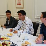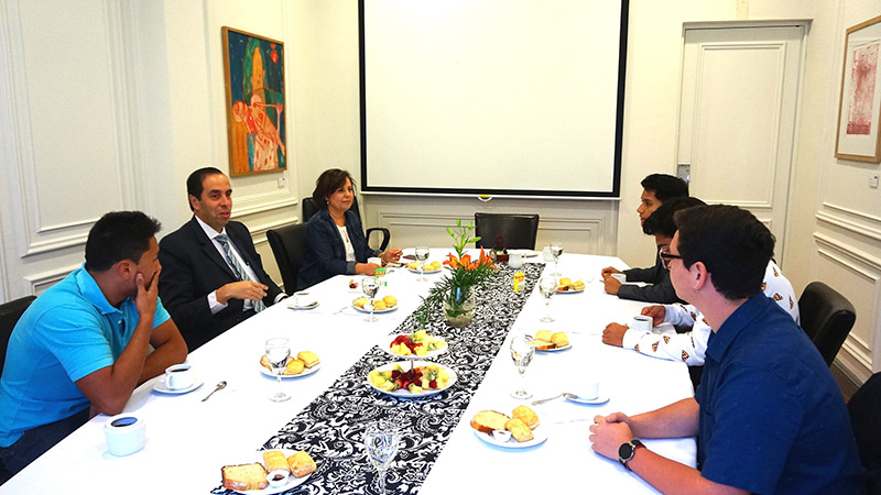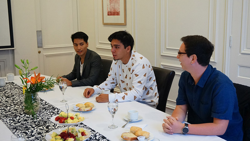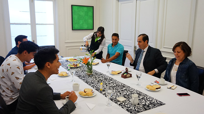 Los desayunos con el rector son uno de los pequeños “lujos” que se pueden dar los alumnos de la Finis, al ser una universidad a “escala humana”. Instancias que sirven para que se planteen inquietudes, se aclaren dudas, y se proyecten iniciativas que puedan servir para mejorar lo malo, y mantener lo bueno. En este primer encuentro del 2017 participaron, junto al rector, Carmen Gloria Hurtado, directora de Asuntos Estudiantiles; Nicolás Ibarra, presidente de la FEUFT; Oscar Núñez, comisión política FEUFT; Germán Tapia, comisión salud FEUFT; y, Rodolfo Saavedra, eventos FEUFT.