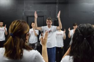 Durante su visita a la U. Finis Terrae, los estudiantes de primer año de la Escuela de Teatro de la U. Finis Terrae tuvieron la valiosa oportunidad de participar en dos talleres. En colaboración con los profesores de GITIS, el profesor Aidar Zakirov, quien lidera el departamento de plasticidad escénica, ofreció un taller centrado en el movimiento escénico. Zakirov explicó: “Mi objetivo es enseñarles a manejar y dominar sus cuerpos. Por supuesto, en uno o dos talleres no se puede abarcar todo, pero haremos nuestro mejor esfuerzo, llevando a cabo ejercicios tanto a nivel individual como grupal”.