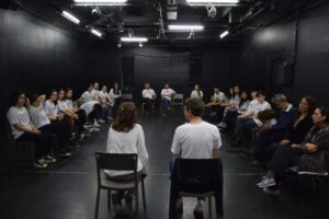 Por su parte, el profesor Taras Belousov, decano del departamento de actuación en GITIS, impartió una clase magistral sobre actuación. Belousov destacó: “Presentamos lo que consideramos esencial dentro del Método Stanislavski para el primer año de estudio, enfocándonos en la comprensión de uno mismo y en la introducción a la profesión, especialmente para el actor de drama”.