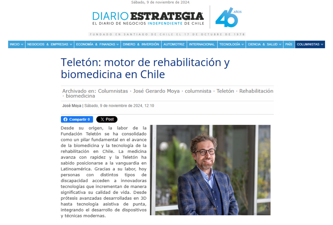 Desde su origen, la labor de la Fundación Teletón se ha consolidado como un pilar fundamental en el avance de la biomedicina y la tecnología de la rehabilitación en Chile. La medicina avanza con rapidez y la Teletón ha sabido posicionarse a la vanguardia en Latinoamérica.