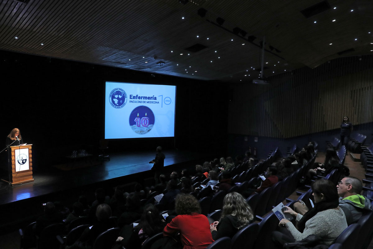 Para iniciar, la directora de la Escuela de Enfermería, Eliana Escudero, presentó un resumen con los grandes logros obtenidos durante estos diez años. En primera instancia, la directora destacó a los profesionales egresados “quienes hoy están desarrollando su trabajo en excelentes instituciones de salud”, dijo Eliana. Además, enfatizó el hecho que “en poco años, la Escuela ha realizado convenios con prestigiosas instituciones nacionales e internacionales, permitiéndonos crecer y colaborar mutuamente para mejorar la calidad de la atención de los pacientes”.