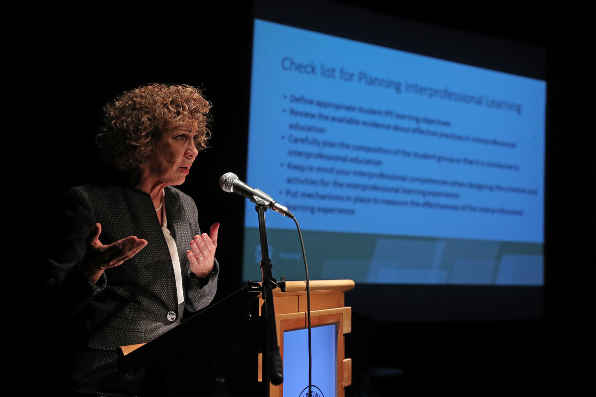 “Hoy observamos que, si bien las carreras de la salud puede que estén todas en un mismo edificio, las diferentes disciplinas están en especies de ´silos´, donde muchas veces los currículos no conversan entre ellos y siguen estando segregados”, afirmó Pamela Jeffries.