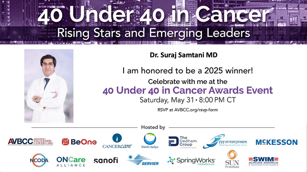 El Dr. Suraj Samtani, académico de la Facultad de Medicina de la Universidad Finis Terrae y oncólogo de Clínica Las Condes, fue seleccionado entre los 40 profesionales menores de 40 años más prometedores del mundo en el ámbito del cáncer, convirtiéndose en el único latinoamericano distinguido con este reconocimiento en 2025.