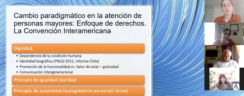 Asimismo la profesora Arenas explicó los instrumentos regionales y las regulaciones a nivel mundial en relación a las personas mayores, destacando que como país “estamos a la vanguardia” a nivel regional, para finalizar luego explicando las reservas realizadas por el Estado de Chile a la Convención Interamericana sobre la Protección de los Derechos Humanos de las Personas Mayores.