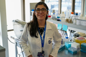 Los objetivos de esta tecnóloga médica y doctora en Ciencias Biomédicas son claros: contribuir a la generación de conocimiento desde el Laboratorio de Investigación en Biomedicina de la Universidad Finis Terrae y promover la formación activa de profesionales del área de la salud. “Aspiramos a que nuestra línea de investigación se desarrolle en todo el país, más allá de la universidad, para así fortalecer el impacto de nuestro trabajo”, subraya. Esta dedicación y compromiso son transmitidos a sus estudiantes y pasantes en el laboratorio, donde mantiene la esperanza de encontrar una cura eficaz contra el cáncer de colon.