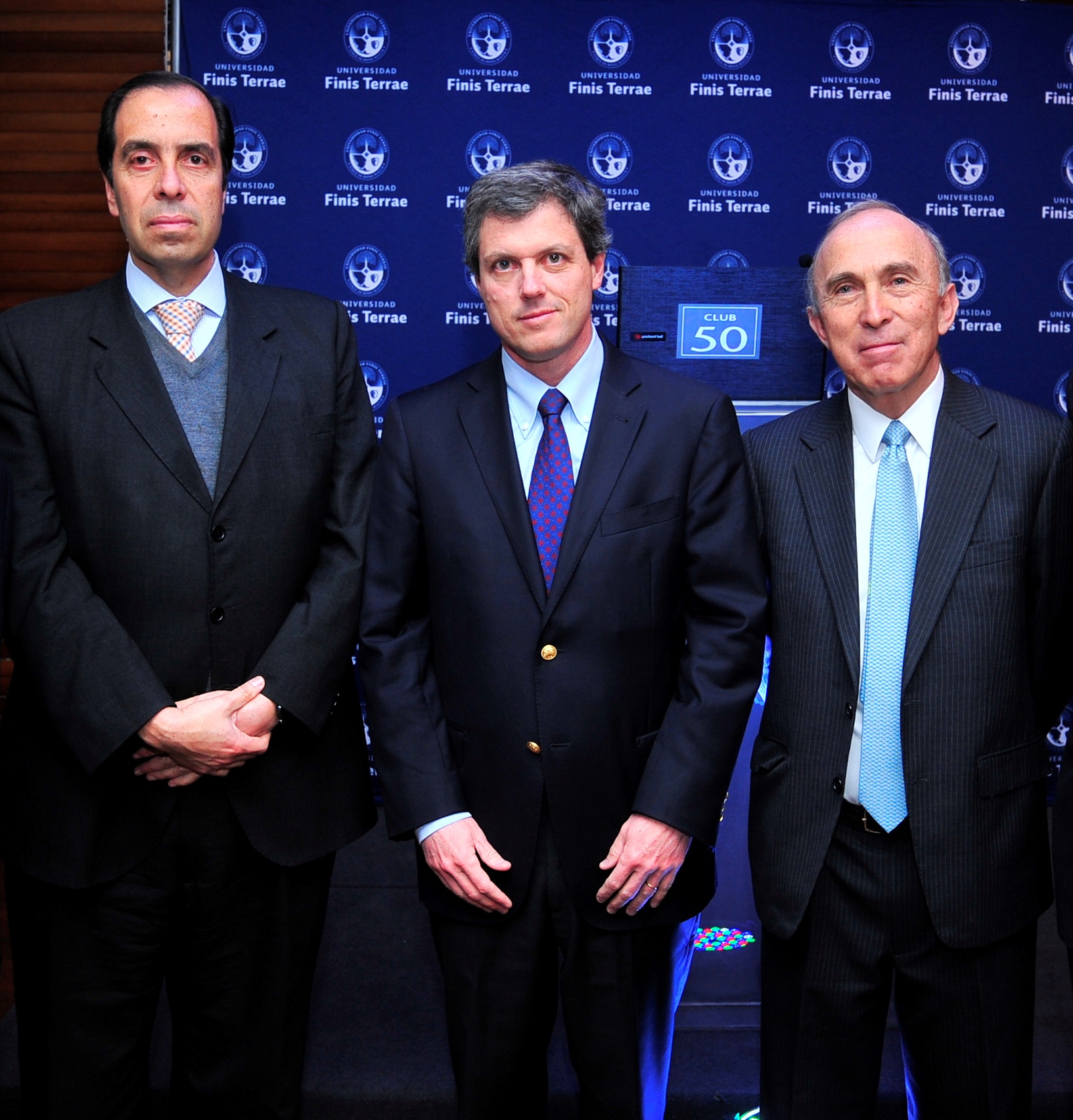 De izquierda a derecha Cristian Nazer, rector de la Universidad Finis Terrae, Sebastián Claro, nuevo presidente del Club Monetario, y Patricio Bustamante, ex presidente de la misma instancia.