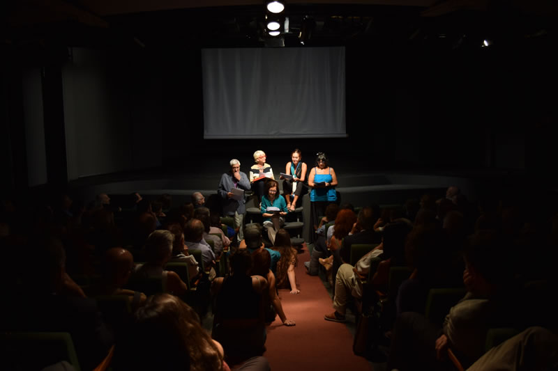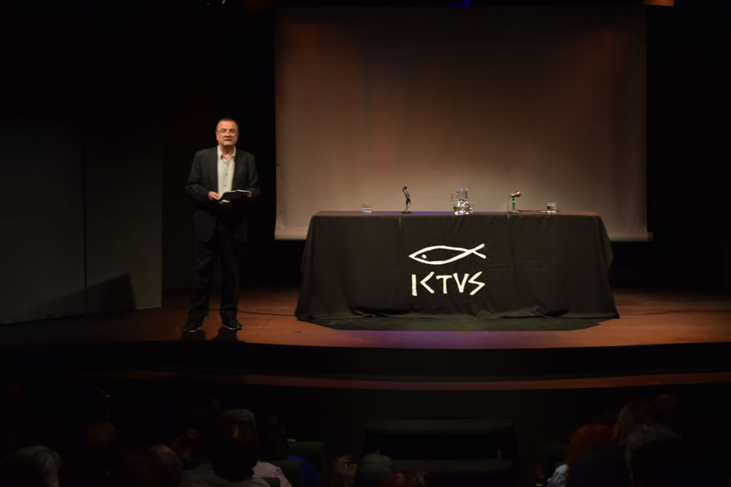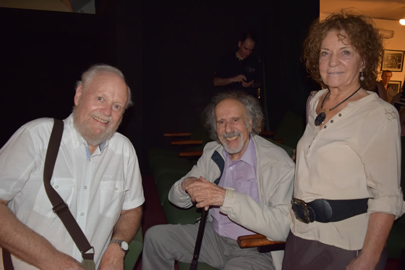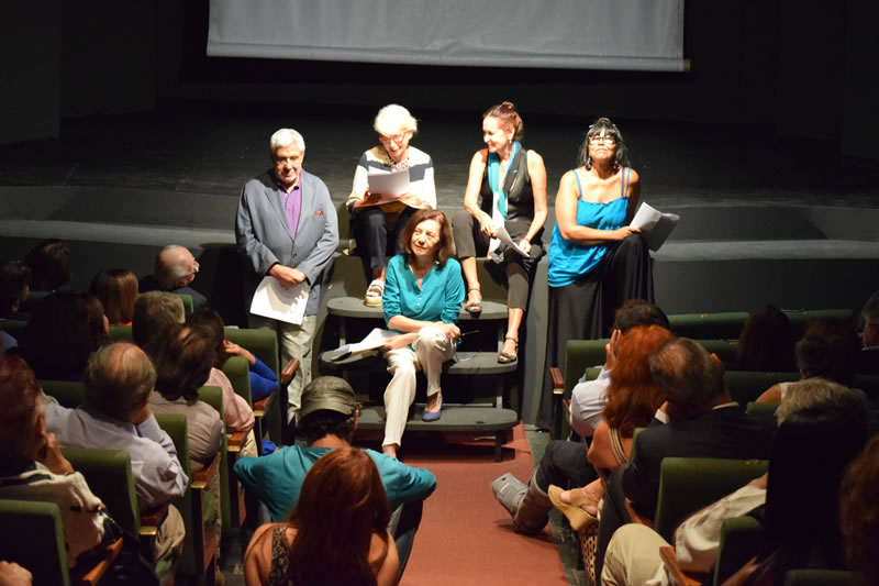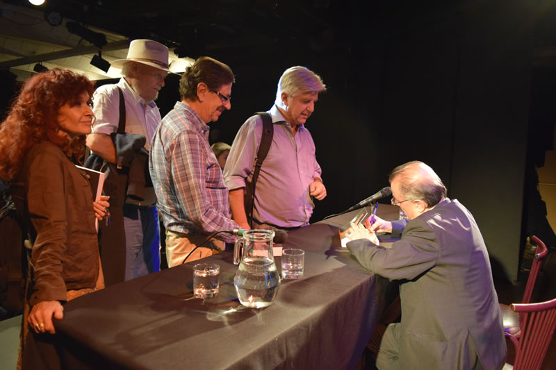 Eduardo Guerrero cautivó a la audiencia con esas palabras y con ello logró que aplaudiesen fervorosamente. Para continuar con la presentación, María Teresa Salinas, Agustín Letelier y Juan Andrés Piña subieron al escenario para dar lectura a sus opiniones sobre la obra Jorge Díaz: El anarquista insomne, escrita por Eduardo Guerrero y publicada por Ediciones Finis Terrae.