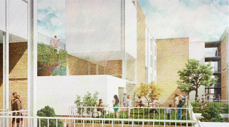 El proyecto de Magdalena propone un nuevo tipo de vivienda en el Barrio Yungay: “da respuesta a la carencia de densidad cualitativa existente y al abandono de valores heredados en el lugar. A través de diversas tipologías se busca alcanzar una mixtura de usuarios que active el espacio colectivo, generando con ello recorridos al interior de la manzana, nuevos programas que estimulen el intercambio social y una vida sostenible de alta densidad a baja escala”, detalla.