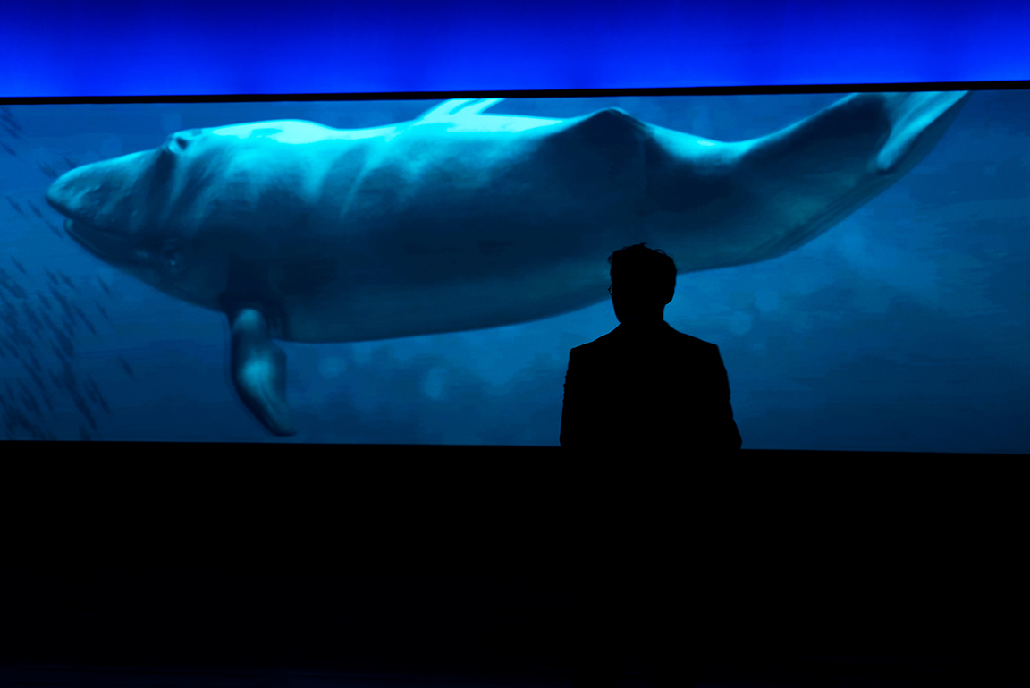 La muestra, realizada en conjunto por el Centro Cultural La Moneda y Fundación MERI, es un montaje que, a través de 200 piezas de distintos artistas, incentiva la comprensión y reflexión respecto al mar a través de un hilo conductor: las ballenas.