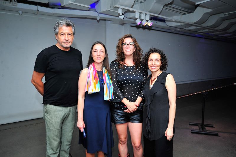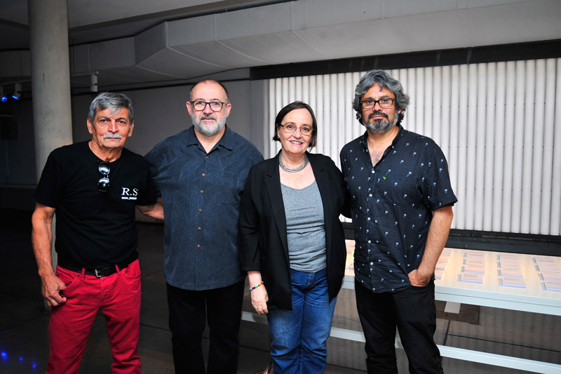 Enrique Zamudio, decano de la Facultad de Artes; Lorena Burgueño, directora de Desarrollo y Relaciones Institucionales; Camila Opazo, de la Facultad de Artes, y Natasha Pons, curadora de la muestra.
