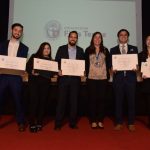Junto a la entrega de los diplomas a todos los recientes egresados, también se destacó a Francesca Figueroa, quien obtuvo el premio a la Excelencia Académica titulada con distinción máxima y también Myriam Valdés, quien recibió el premio Vince in Bono Malum.