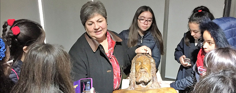 La exposición cuenta con visitas guiadas para familias, colegios e instituciones, previamente coordinadas. A esta función de guía acaban de incorporarse las egresadas Marcela Solís de Ovando y Nancy Velásquez, recientemente tituladas en Pedagogía en Religión y Moral Católica.