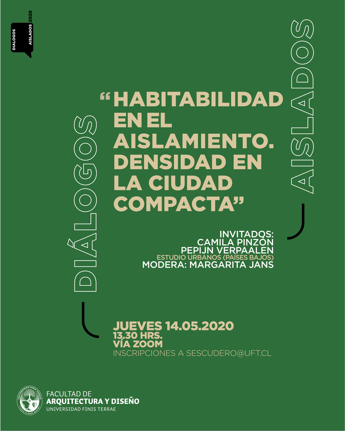 ¿Cómo afrontamos el problema del aislamiento desde la habitabilidad, el tiempo o el espacio? Esas son algunas de las interrogantes que plantea el ciclo “Diálogos aislados”, organizado por la Escuela de Arquitectura de la Universidad Finis Terrae. En estos encuentros el tema central es el aislamiento visto desde la mirada de artistas, arquitectos, diseñadores, músicos, científicos y periodistas nacionales e internacionales.