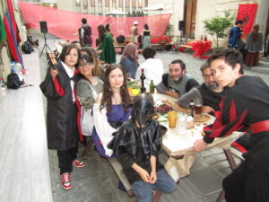 La tradicional disputa entre las cofradías de los Draconis y los Orsinis constituye el examen de la asignatura de Historia Medieval para los estudiantes de tercer año de la Licenciatura en Historia, conocido como “La Fiesta Medieval”. Esta actividad surgió en 1997, y las cofradías se fundaron en el 2000. Así, siguiendo una de las tradiciones más arraigadas de la universidad, al caer el sol del último sábado de noviembre se recrea un ambiente festivo y se hace un viaje en el tiempo en uno de los patios de la institución.