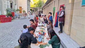 Parte de la prueba consistía en recrear el ambiente del siglo XII. Según la profesora Miriam Gusella, por ello se incluyeron alimentos como carne (en esa época solo unos pocos tenían permiso para cazar animales menores), frutas frescas, quesos, pan, frutos secos y bebidas. “Los alumnos de la carrera preparan textos, obras de teatro, cantos y bailes. No solo buscan aprobar el examen en términos de calificaciones; lo que más les interesa es vivir la Edad Media”, enfatizó.