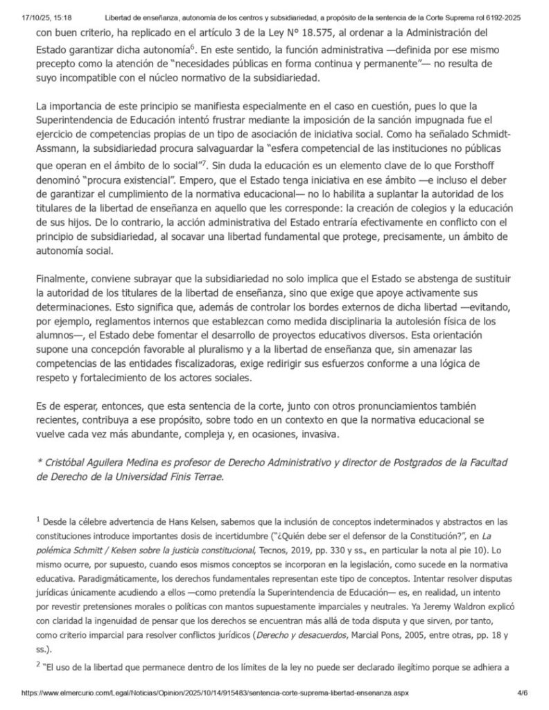 El profesor Aguilera analizó reciente sentencia de la Corte Suprema sobre la autonomía de los centros docentes para establecer sus propias normas de convivencia.