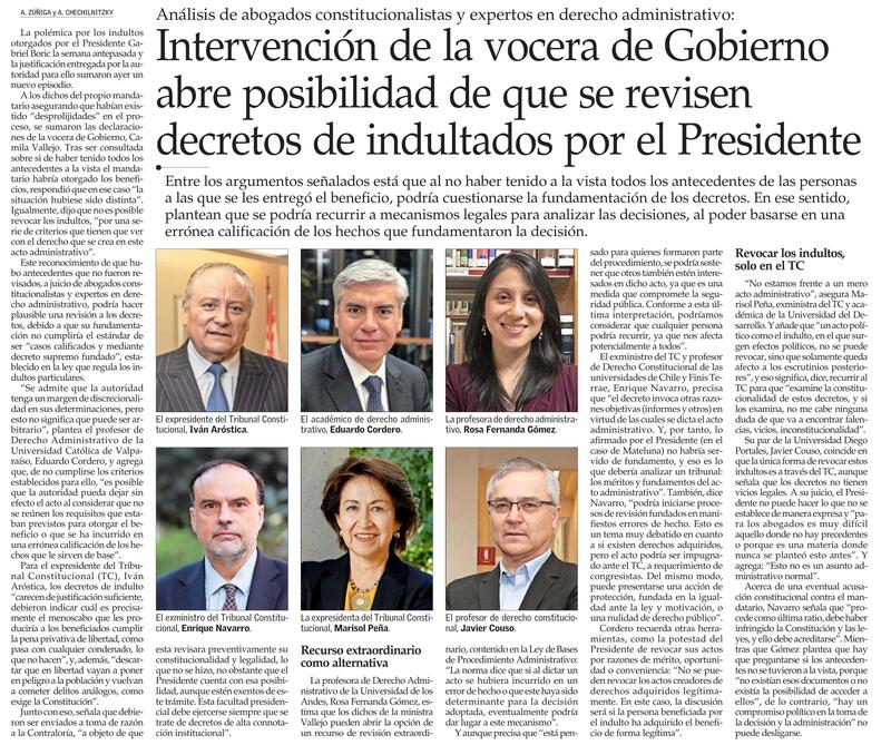 El Mercurio | Profesor Enrique Navarro fue consultado sobre si la intervención de la vocera de Gobierno, Camila Vallejo, abre posibilidad de revisar indultados presidenciales