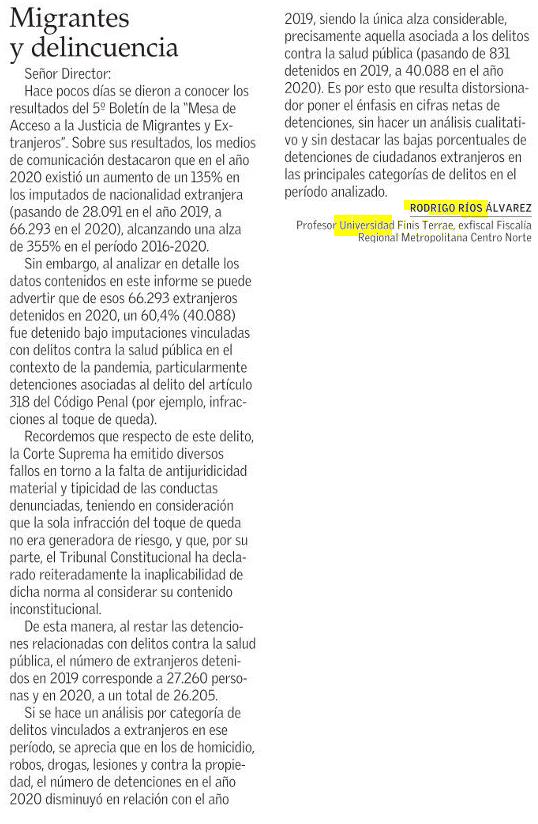 En Carta al Director el docente analizó en detalle las cifras entregadas por el 5º Boletín de la Mesa de Acceso a la Justicia de Migrantes y Extranjeros, demostrando lo erróneo de la interpretación difundida por algunos medios de comunicación.