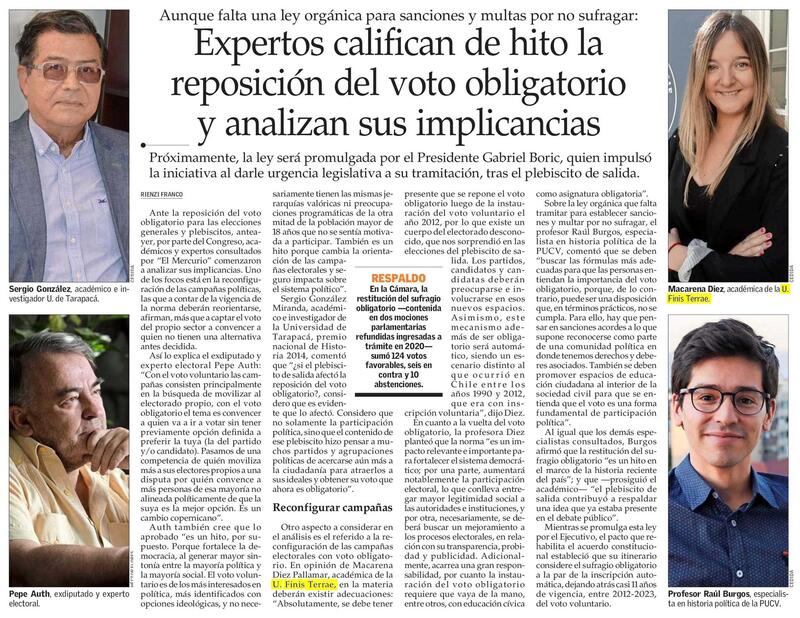 Ante la reciente reposición del voto obligatorio para las elecciones generales y plebiscitos, por parte del Congreso, El Mercurio consultó a un grupo de académicos y expertos sobre las implicancias políticas y electorales de esta ley que próximamente será promulgada por el Presidente Gabriel Boric.