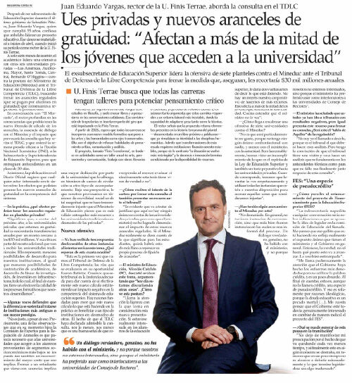 En portada y en sus páginas interiores, El Mercurio publicó una amplia entrevista al Rector de la Universidad Finis Terrae, Juan Eduardo Vargas, quien analizó críticamente el impacto que tendrá la modificación de los aranceles regulados de gratuidad en las instituciones privadas del país.