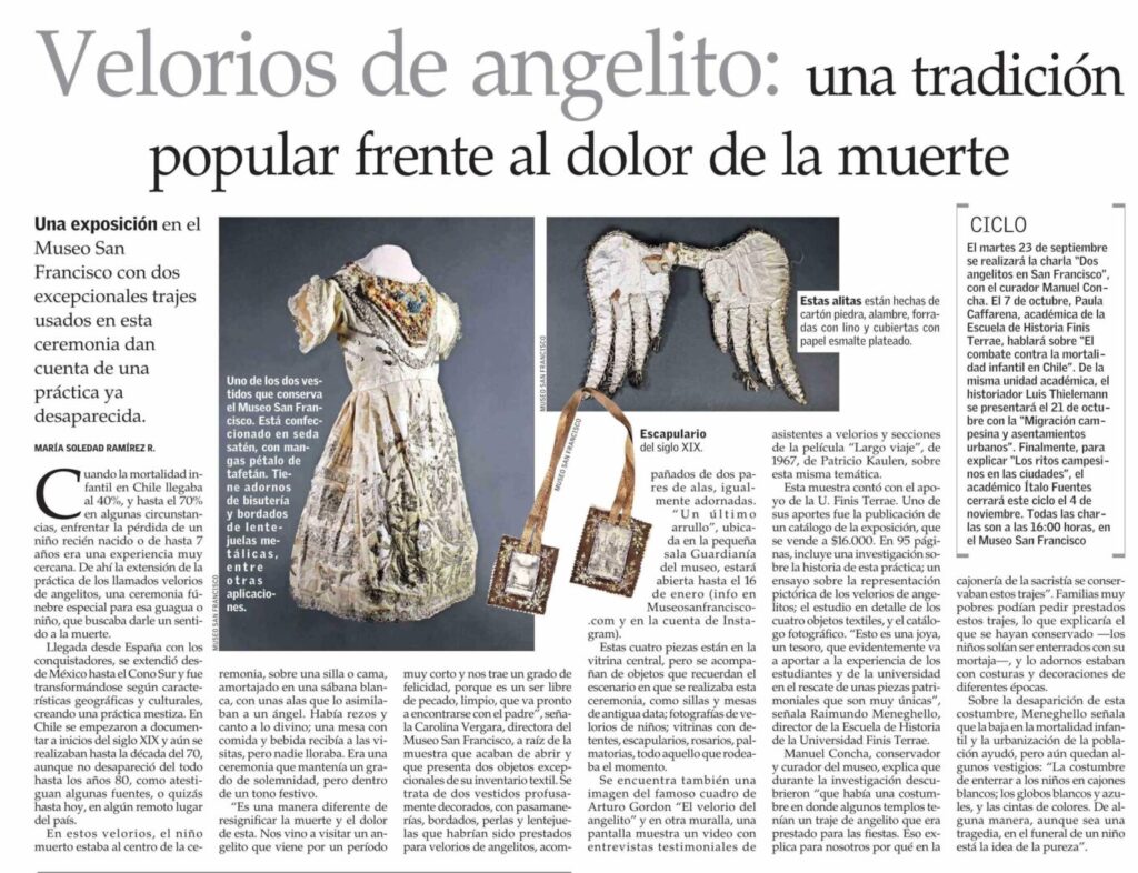 Finalmente, Carolina Vergara, directora del Museo San Francisco, afirmó: “Es una manera diferente de resignificar la muerte y el dolor de esta. Nos vino a visitar un angelito que viene por un período muy corto y nos trae un grado de felicidad, porque es un ser libre de pecado, limpio, que va pronto a encontrarse con el padre”.