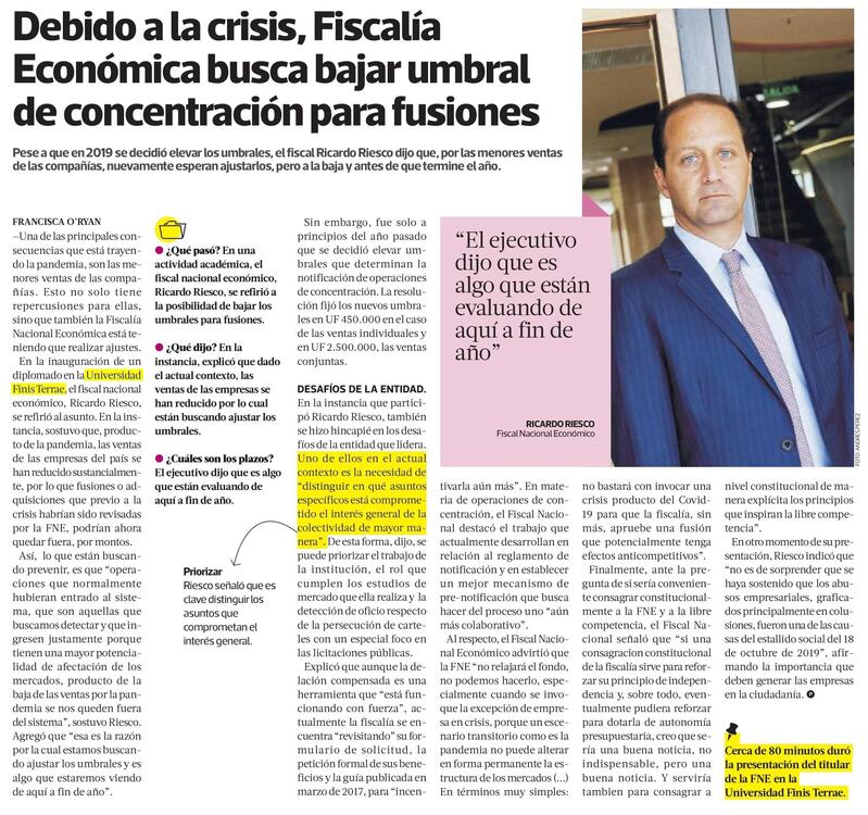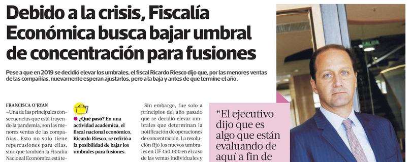 La medida busca prevenir que “operaciones que normalmente hubieran entrado al sistema, que son aquellas que buscamos detectar y que ingresen justamente porque tienen una mayor potencialidad de afectación de los mercados, producto de la baja de las ventas por la pandemia se nos queden fuera del sistema”, señaló Riesco. “Esa es la razón por la cual estamos buscando ajustar los umbrales y es algo que estaremos viendo de aquí a fin de año”.