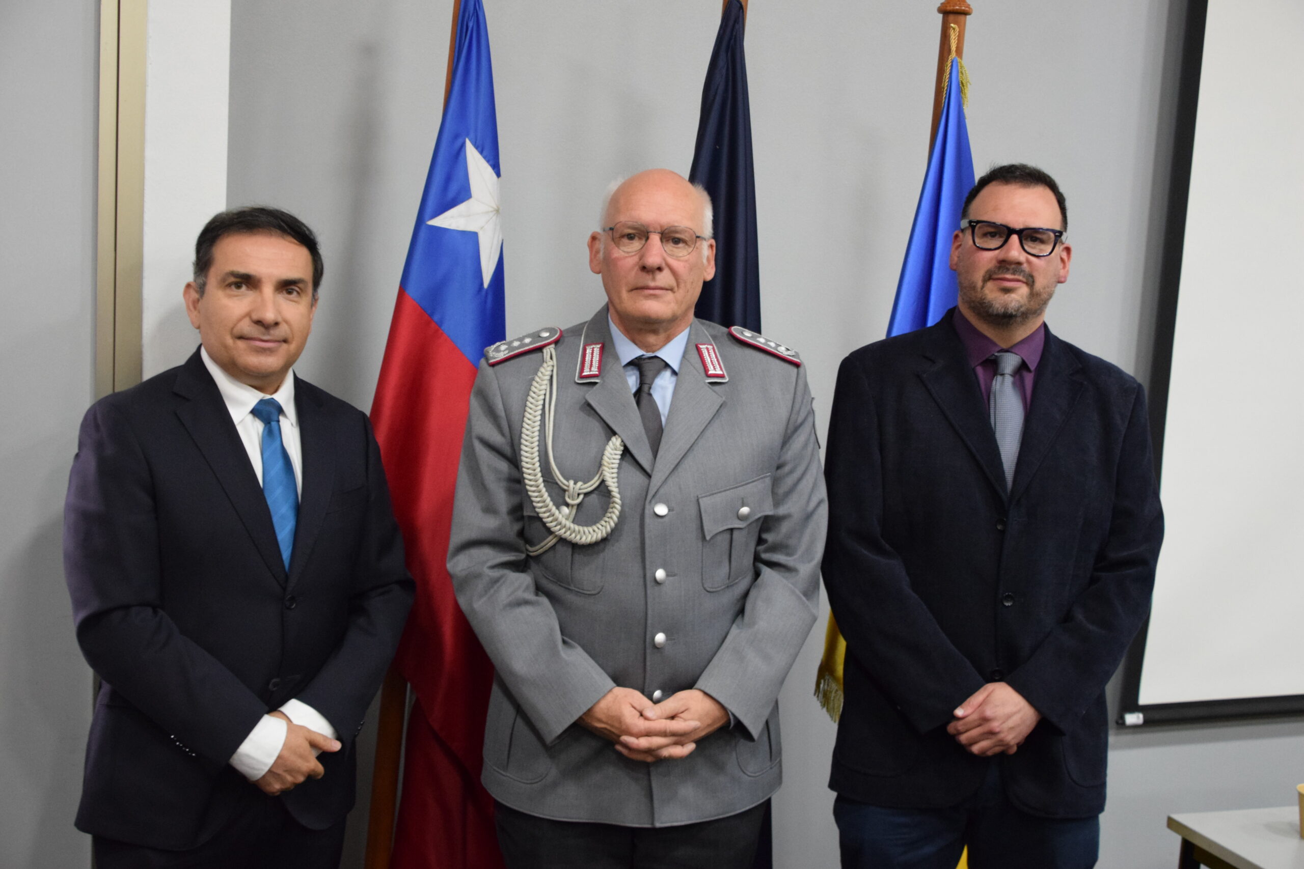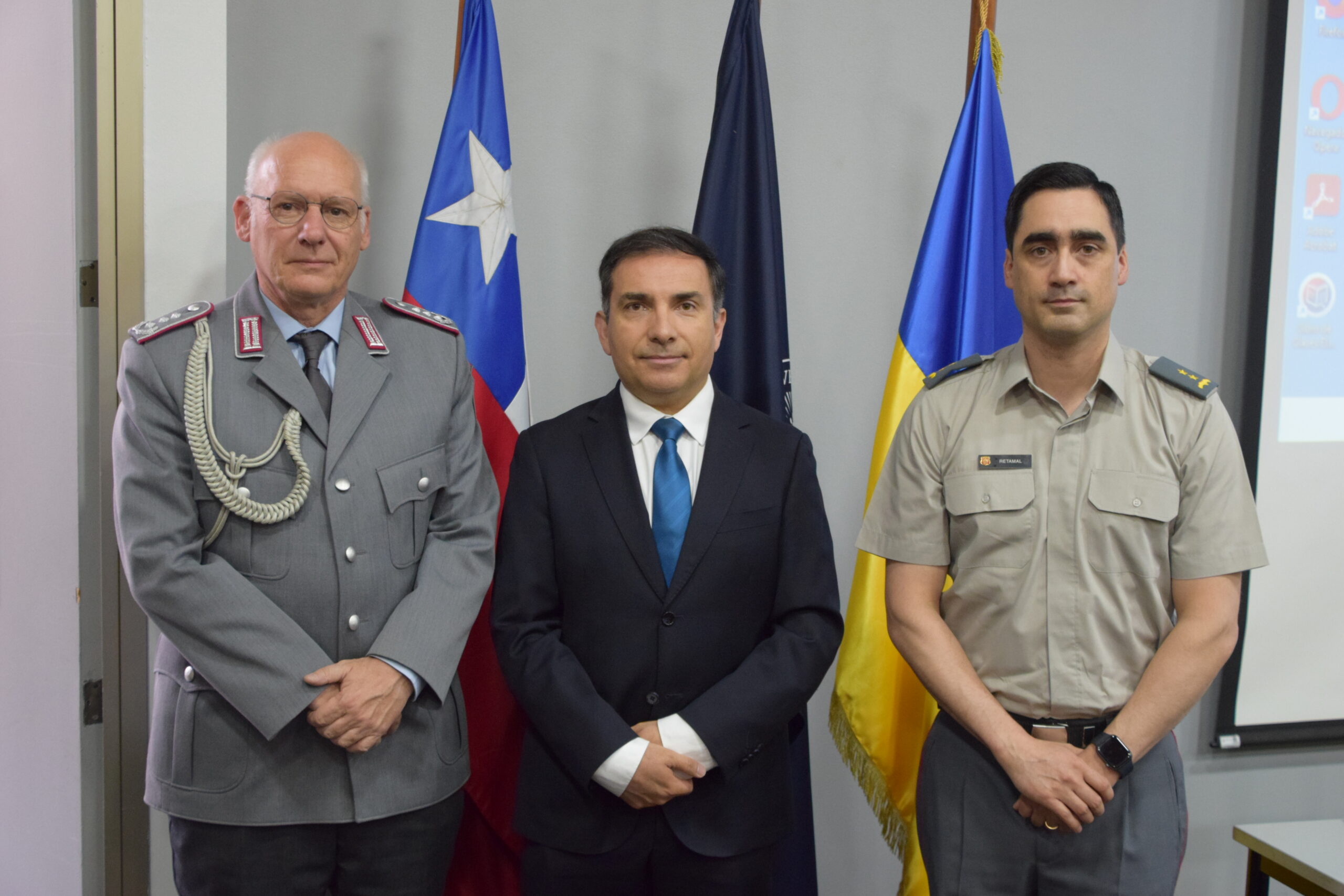 - Lothar Likus, agregado militar de Alemania en Chile; Alberto Rojas, director del Observatorio de Asuntos Internacionales; Cristián Retamal, de la Academia de Guerra del Ejército.