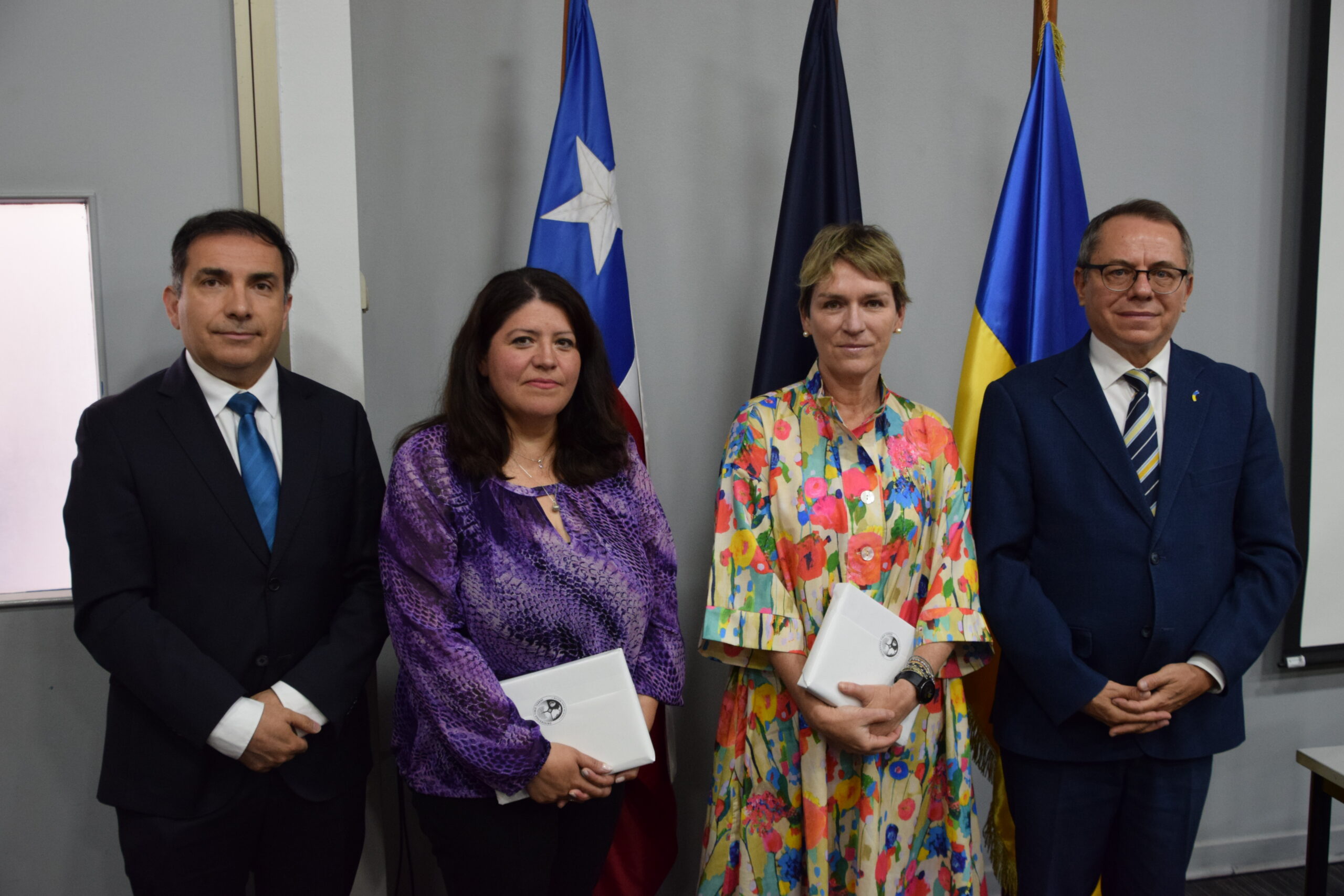 - Alberto Rojas, director del Observatorio de Asuntos Internacionales; Ana María Tapia, investigadora Academia de Guerra del Ejército; Andra Botto, académica de Historia U. Finis Terrae, Yuri Diudin, Embajador de Ucrania en Chile.