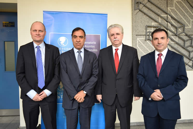 Posteriormente, los embajadores invitados, expusieron sobre los organismos que rigen por dentro la UE, dando cuenta de 4 ejes centrales. Miklós Deák, embajador de Hungría, los denominó como “El Consejo de la UE, el Consejo Europeo, la Comisión Europea, y el Parlamento Europeo son el ABC de las instituciones en la UE”. Se refirieron además, por los grandes retos que se les avecinan, tales como la solución al cambio climático, y la lucha contra el terrorismo, destacando la labor de nuestro país en materias climáticas. “La Presidenta Michelle Bachelet es una gran referente de la UE en América en materia de conciencia ecológica, ella fue la primera de Latinoamérica que habló de ese tema en un discurso ante la ONU en 2015”, sostuvo Andersen.