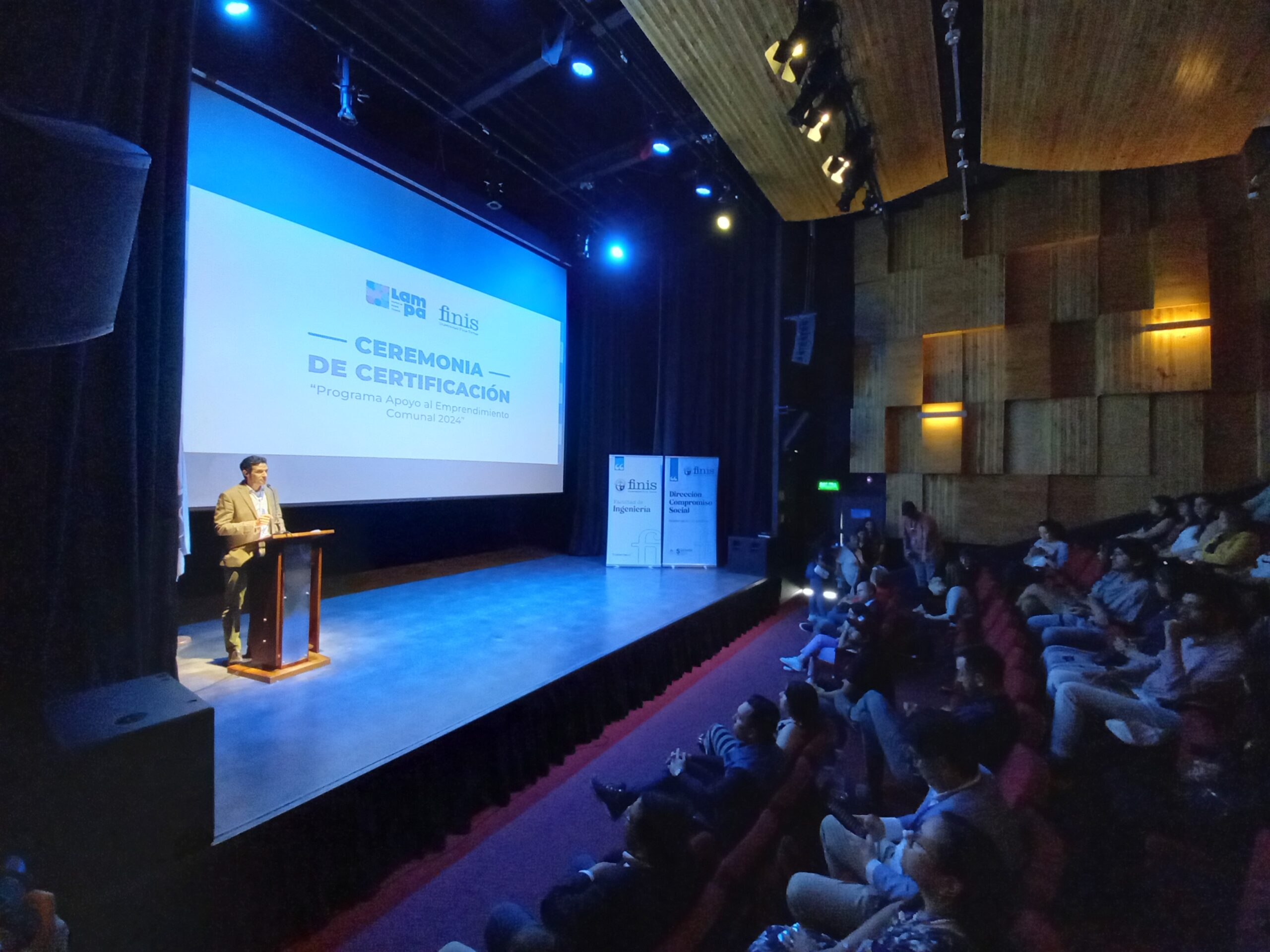 Así como Francisco, fueron más de medio centenar de emprendedores y emprendedoras los que llegaron hasta el Teatro Municipal de Lampa, muchos acompañados por sus familiares, para recibir su certificación por haber sido parte del programa “Apoyo al emprendimiento comunal”, una iniciativa organizada por la municipalidad local, la Facultad de Ingeniería y la Dirección de Compromiso Social de la Universidad Finis Terrae. El proyecto tuvo como objetivo principal capacitar a emprendedores de la comuna para mejorar su capacidad de acceder a fondos públicos y fortalecer sus negocios.