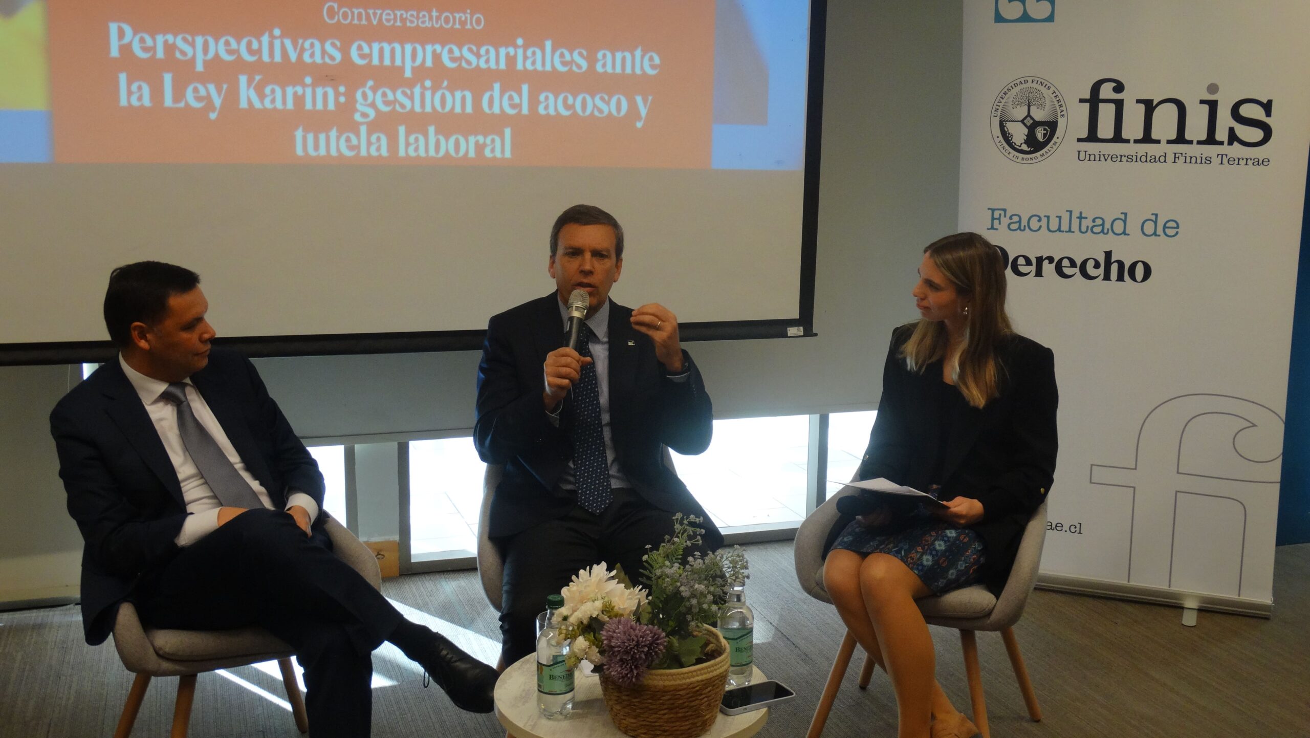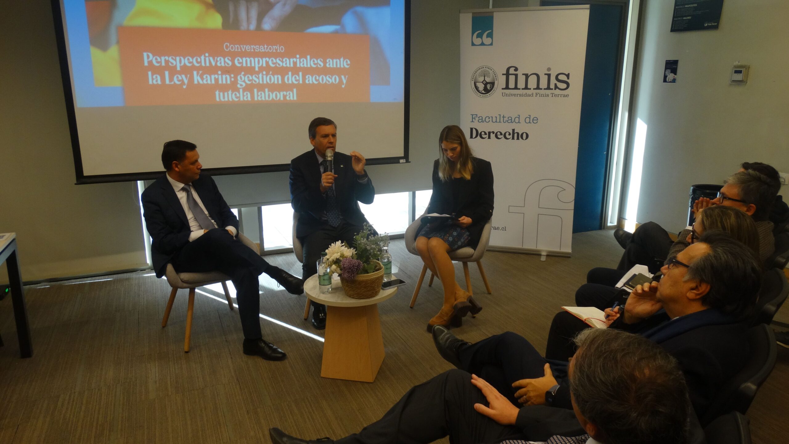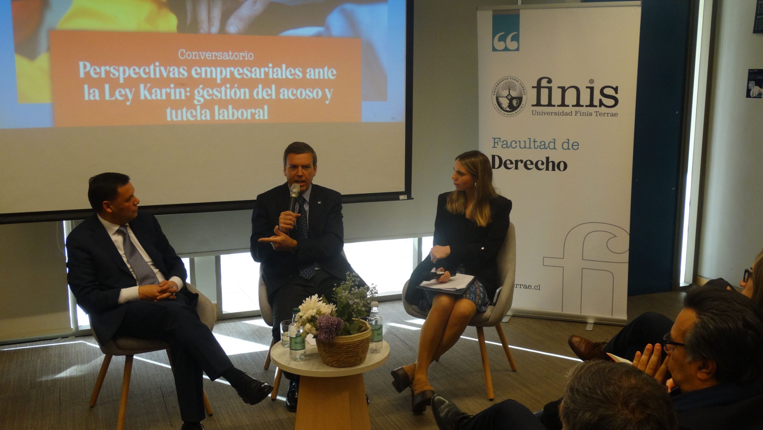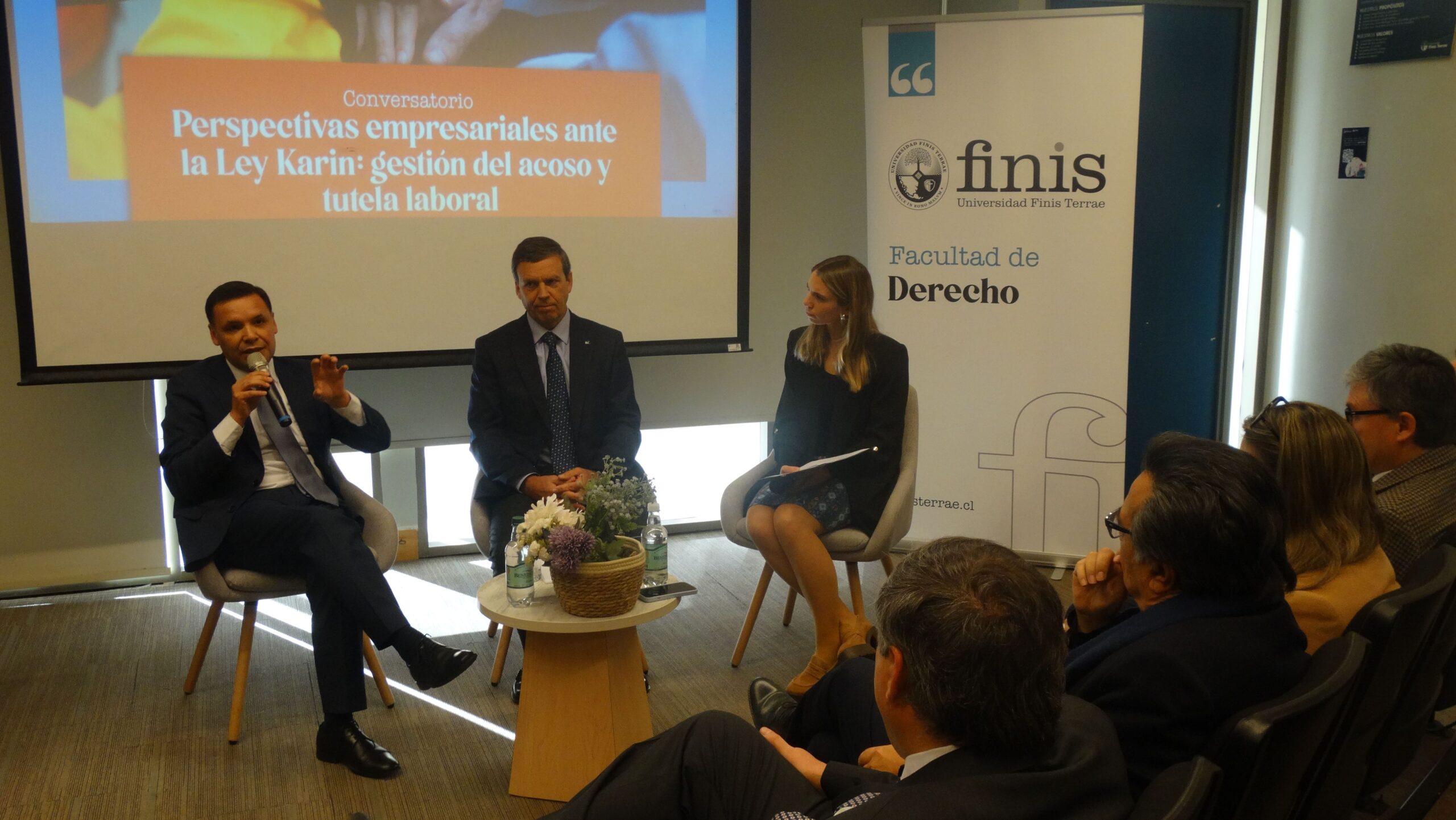 Con el fin de que empresarios y trabajadores pudieran resolver sus dudas en torno a la entrada en vigencia de la llamada Ley Karin, la Facultad de Derecho de la U. Finis Terrae organizó el conversatorio Perspectivas empresariales ante la Ley Karin: gestión del acoso y tutela laboral.