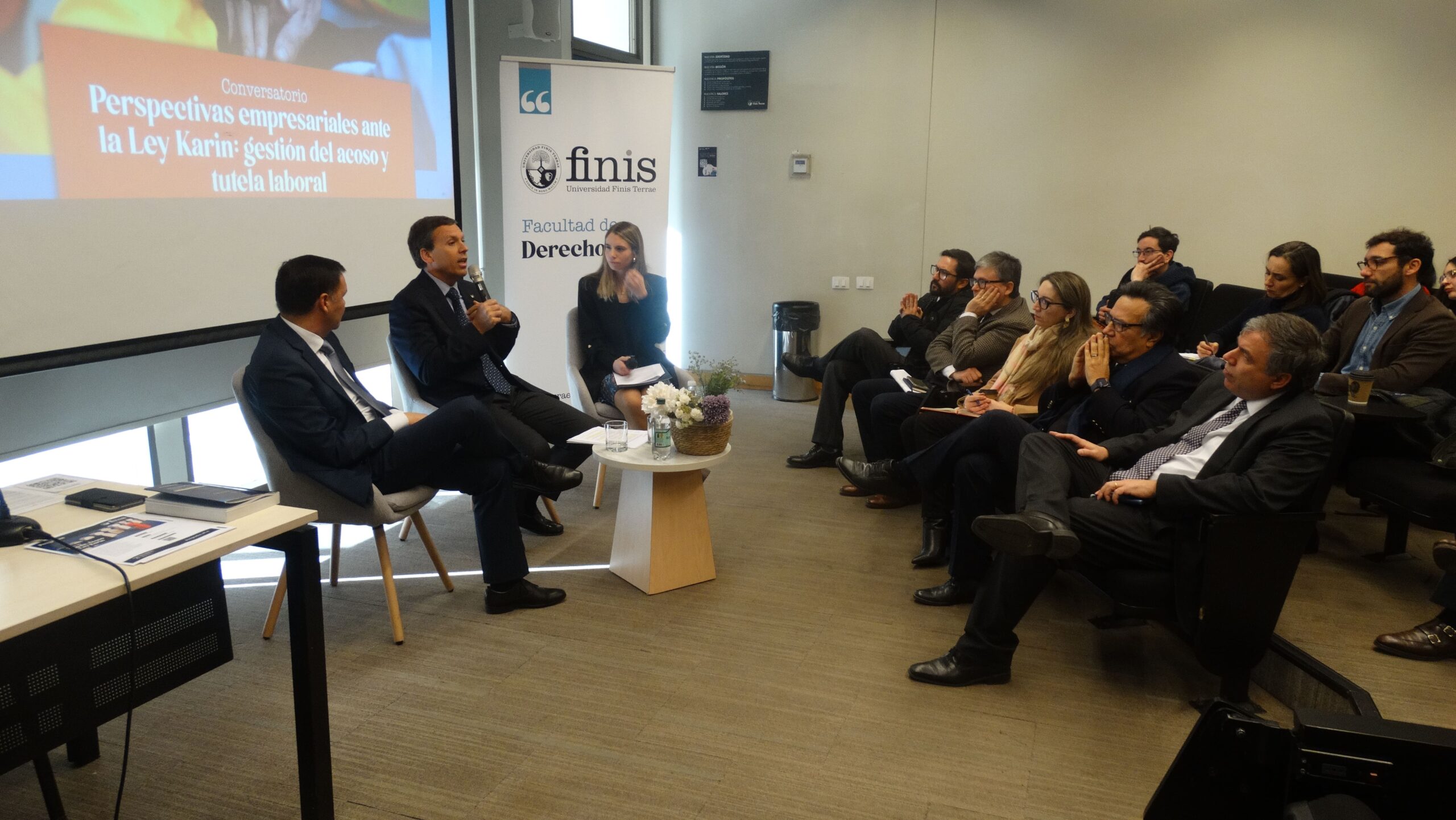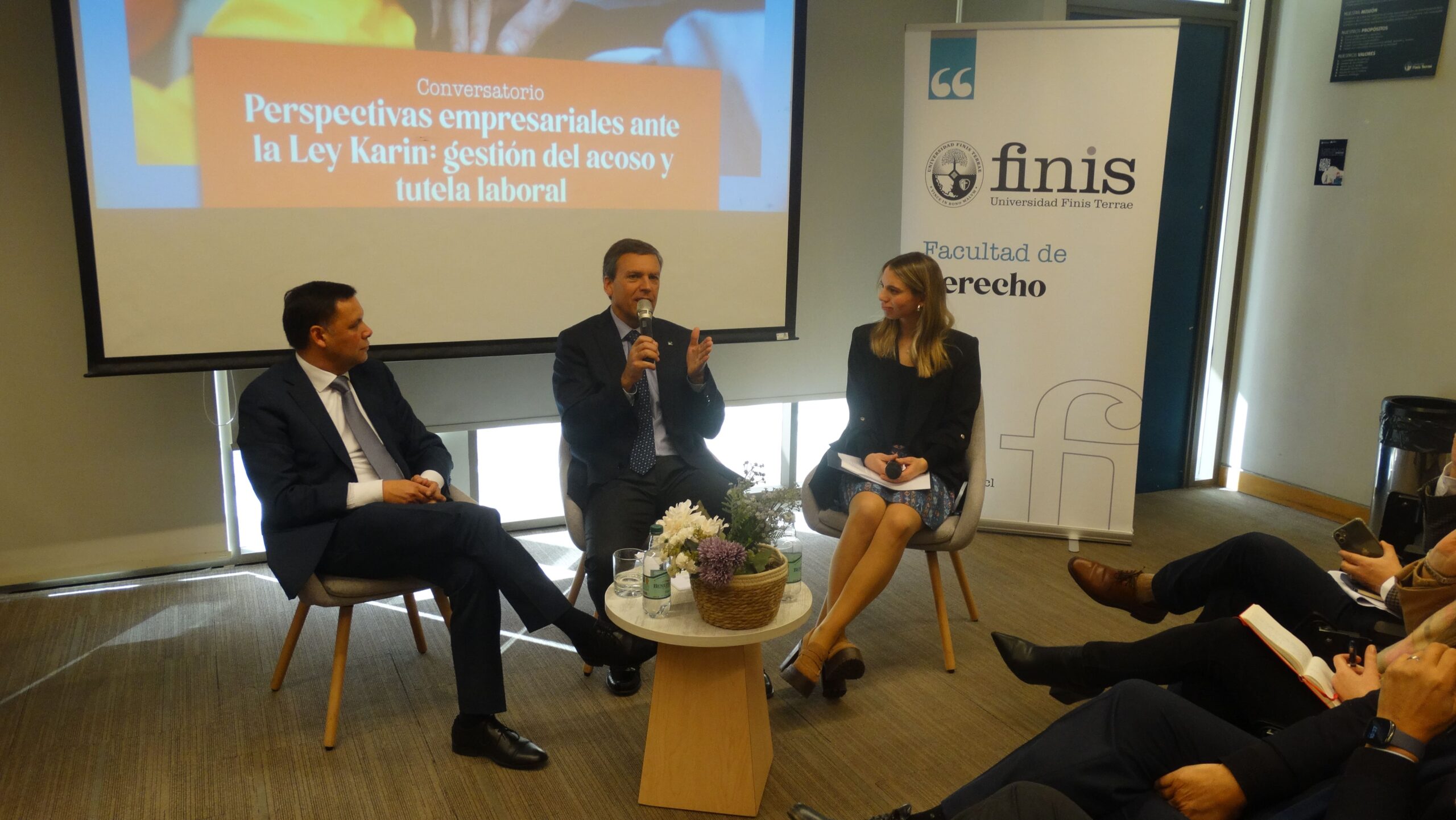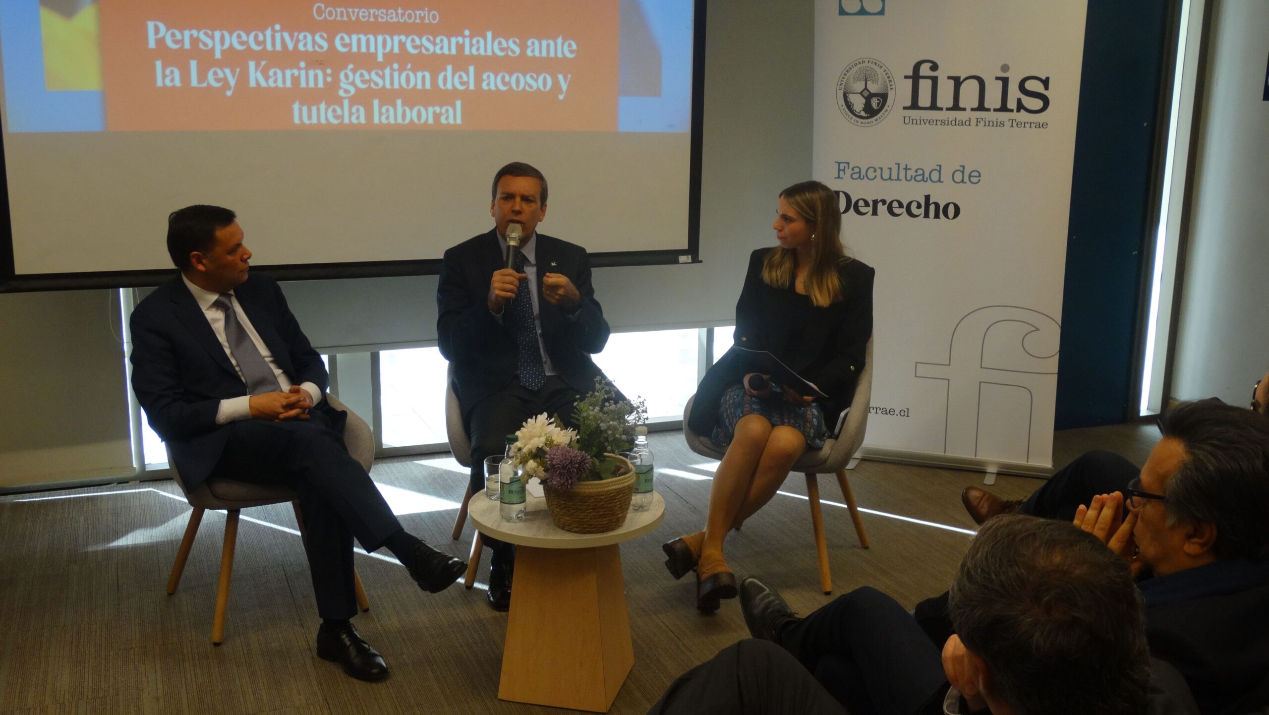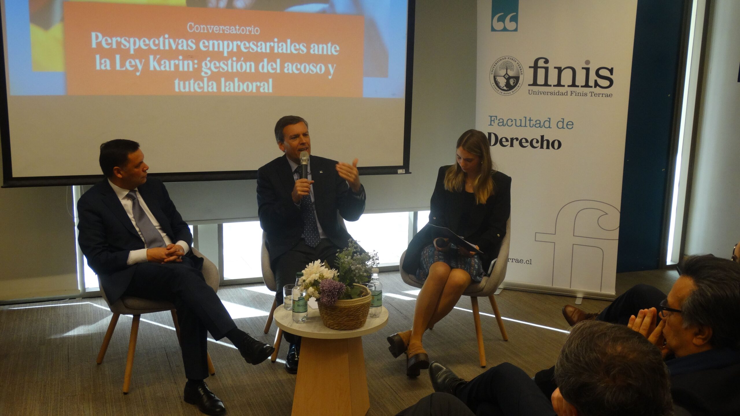 Con el fin de que empresarios y trabajadores pudieran resolver sus dudas en torno a la entrada en vigencia de la llamada Ley Karin, la Facultad de Derecho de la U. Finis Terrae organizó el conversatorio Perspectivas empresariales ante la Ley Karin: gestión del acoso y tutela laboral.