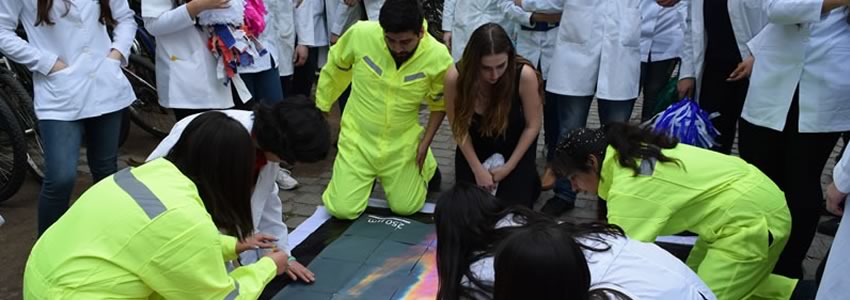 El objetivo fue mostrar a la comunidad universitaria las actividades realizadas por los alumnos de primer año del curso de Histología Oral, extrapolando observaciones hechas en un microscopio a gigantografías métricas, que permitan que se conozca a través de una expresión científico artística e innovadora, la organización de los dientes en los cuales los estudiantes trabajan.