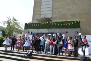 Charlotte, en tanto, bailó con el profesor de Derecho Felipe Pavez, quien iba con el atuendo de huaso. Al final, la estudiante belga señaló: “Lo que más me gustó fue lo que hacíamos como aplauso (las palmas del inicio), pero lo que más costó fue hacer las rondas, porque no sabía cuándo había que ir a la derecha o a la izquierda. ¡No sabía qué hacer con mis pies! Pero había que hacer el intento”.