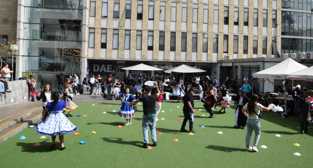 Un ondear de pañuelos blancos, que se movían al son de la cueca “La consentida” animó a estudiantes, académicos y colaboradores en la clase de nuestro baile nacional, celebrado en el patio central de la Universidad Finis Terrae. En esta actividad también participaron alumnos internacionales que animaron a dar sus primeros pasos.